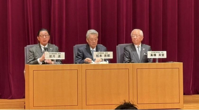 会見には、松本吉郎日本医師会会長、高橋英登日本歯科医師会会長、岩月進日本薬剤師会会長が出席しました。